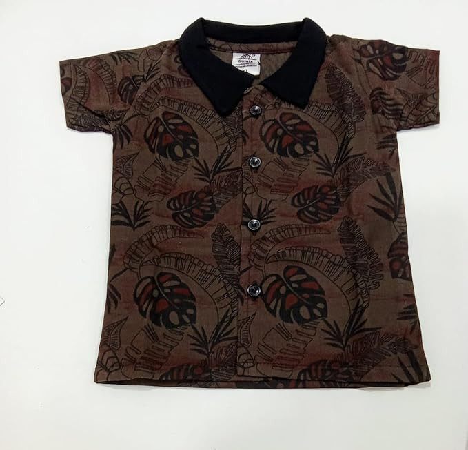 COCO TRIBE brown printed t shirt with black shorts is a very elegant but casual look. It has a black collar and botton down with half sleeves. (brown &black, excel) Comfortable Baby Clothes: The soft fabric used in this baby clothing set it’s perfect for any season. Item Dimensions LxWxH 18" 13" 18" 2-4 Year