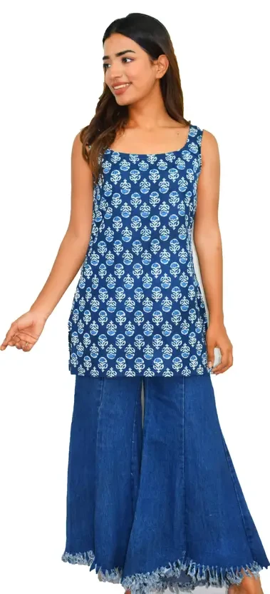 Hand Block Print broad Neck, Halter style sleev less top. Made in best of the cotton fabrics printed