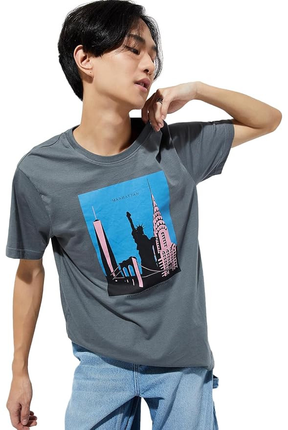 Men Slim Fit Graphic T-shirt Color: Dark Grey Pattern: Graphic Print Fabric :100% Cotton Wash Care :Machine Wash