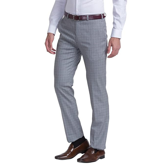 Fabric : Polyester Blend Fit Type : Contemporary Fit Color : Dark Grey Pleat : Flat Front Pattern : Checks