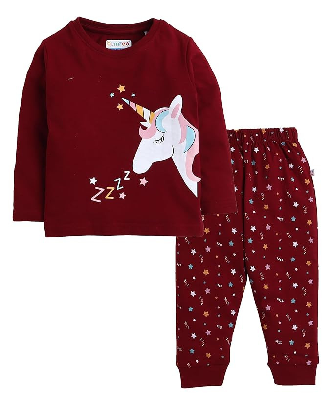 BUMZEE Maroon Girls Full Sleeves T-Shirt & Pyjama Set