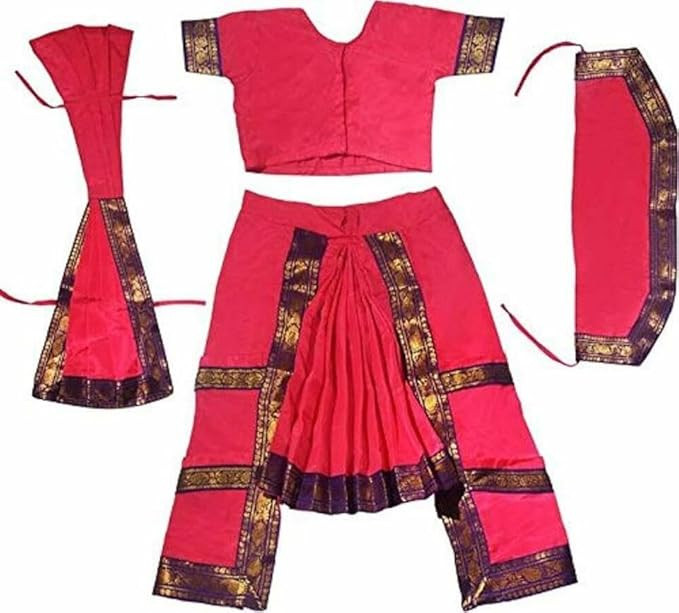 Dindo Point Pink Bharatnatyam Dress for Girls with 1 Line Ghungroo Classical Dance Costume