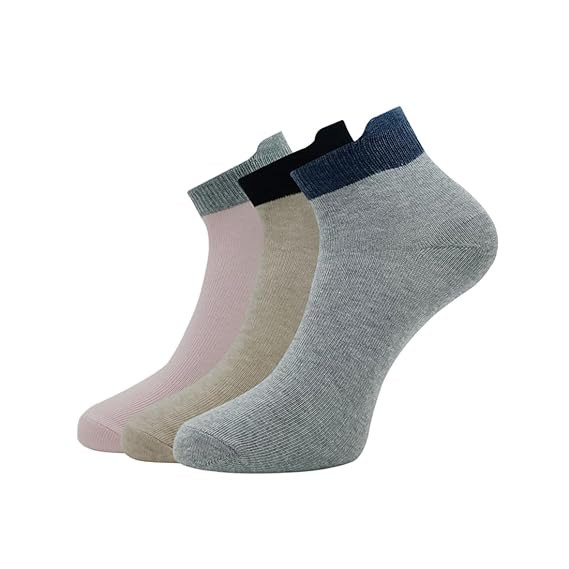 women's Cotton Ankle Length Socks (Pack of 3) Baby Pink, Skin Melange, Light grey Melange