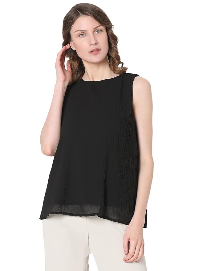 Women Polyester Regular A Line Pleated Top