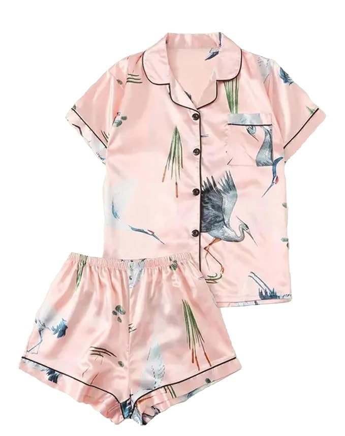 Xivir Pajamas Set Soft Women Satin Sleepwear Lingerie 2 Piece Silk Pjs T-Shirt and Shorts Sleep Camisole Nightwear