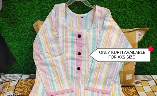 XXS, XS, S (Bust Size : 36 in, Shoulder Size: 14 in, Kurta Waist Size: 32 in, Kurta Length Size: 42 in, Bottom Waist Size: 32 in, Bottom Length Size: 40 in)