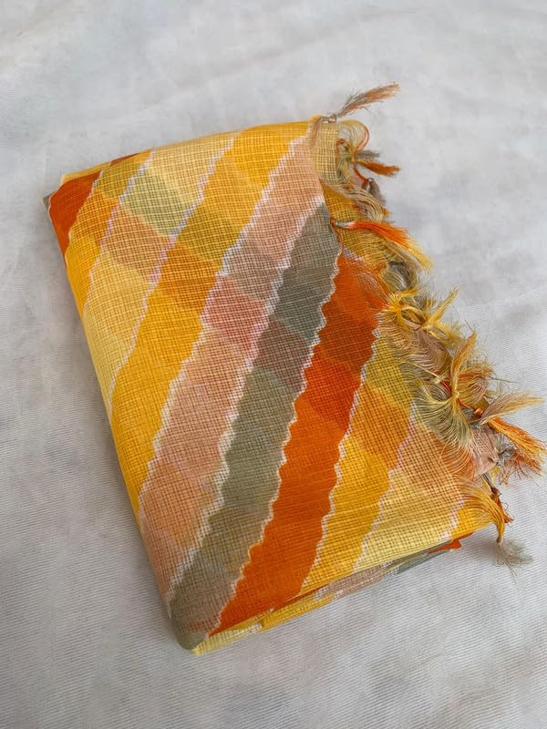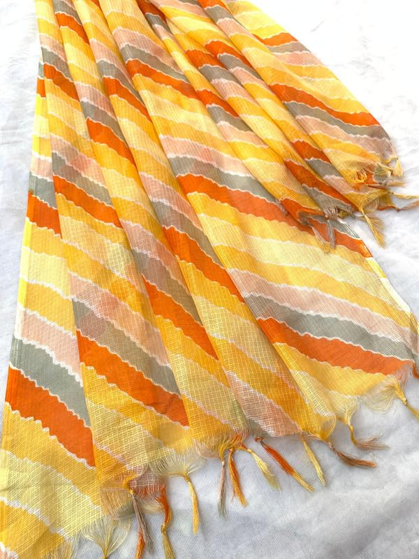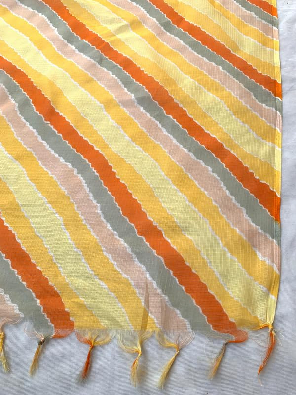 Crafted from high-quality poly Kota laheriya for durability and comfort. Embrace the season with a stylish yellow leheriya print, adding a touch of sophistication.