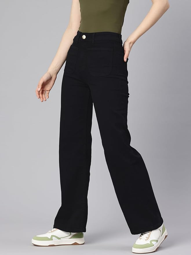 Fashion design: High Rise Wide leg, zipper and button closure, pockets on the front and back. Comfort fabric: Button bootcut trousers for women is made of 85%Cotton+15%Lycra. Loose style fit to meet different body types as much as possible. Easy to match: The straight wide leg jeans for women great to pair with your blouse, vests, shirts, sweaters, coats and so on, a must-have womens jeans in your wardrobe all year round.