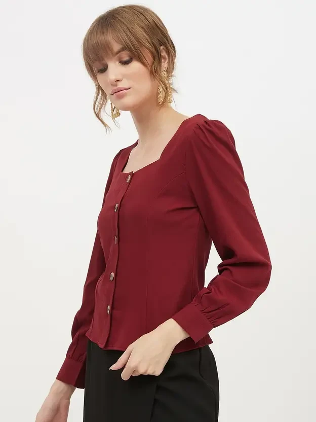 Casual Regular Sleeves Solid Women Maroon Top
